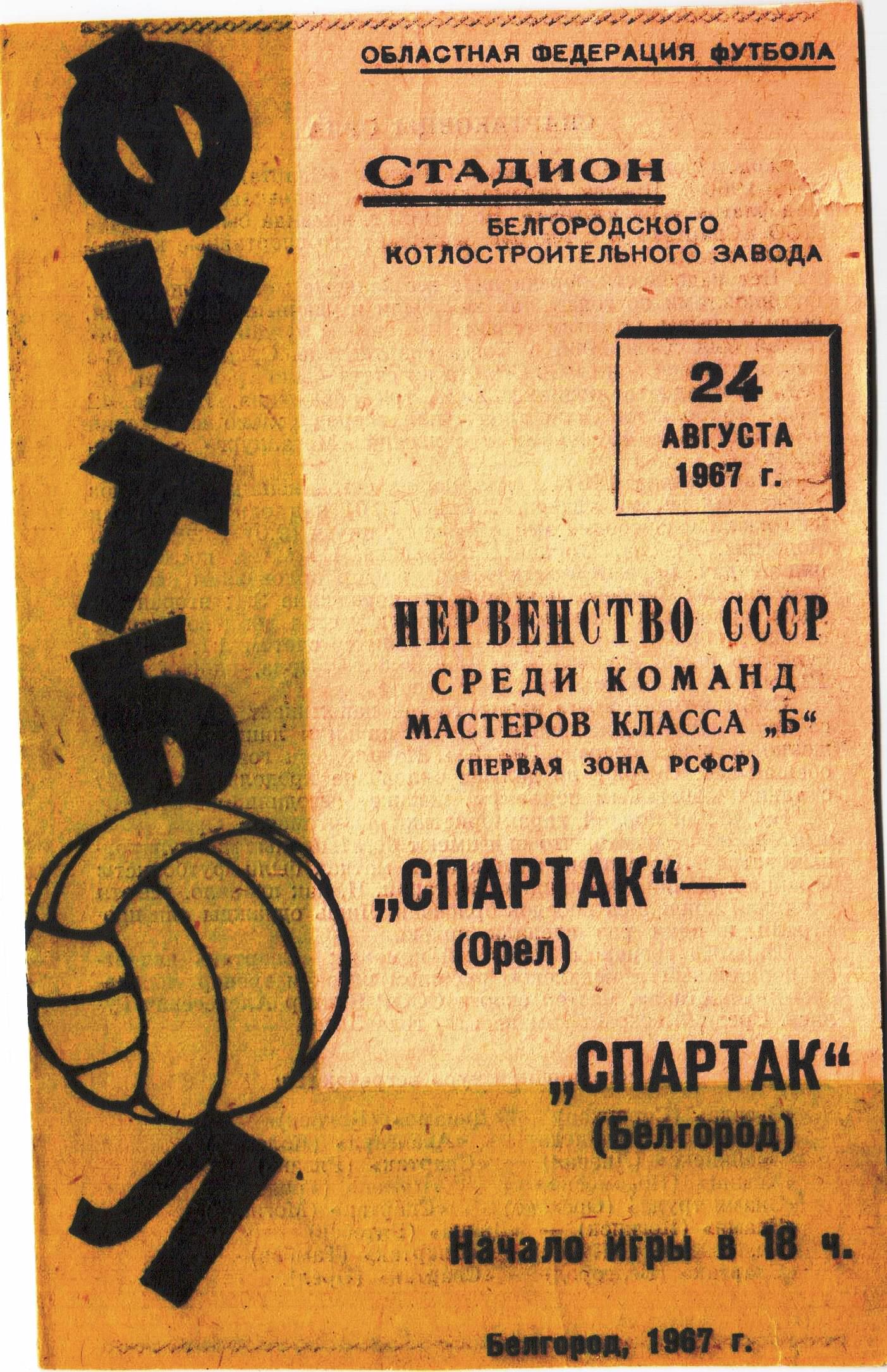 24 августа. Первенство CCCP. Спартак Белгород - Спартак Орел